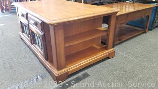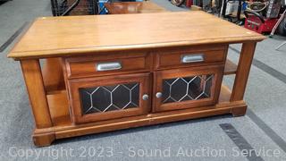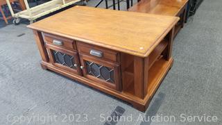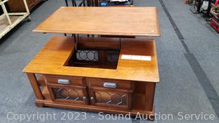 Lot #0017: Oak Mechanical Lift Top Rolling Coffee Table