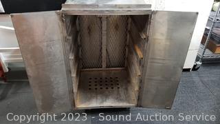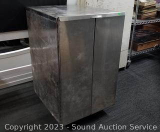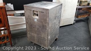 36" H x 21" W x 24" D. Various scuffs & wear to finish, missing power cord, just a box.