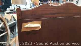 Some scuffs, wear to finish. Appears to be solid wood construction, dovetail joinery. 36.5" H x24" W x 16" D.