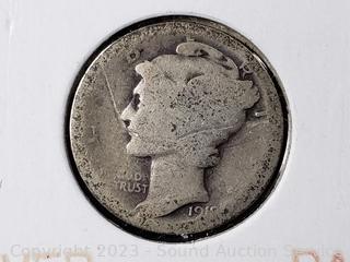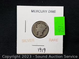 Lot #0257r: Rare 1919 90% Silver US Mercury Dime