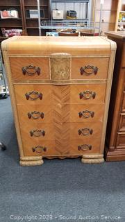 Lot #0026: Vintage Waterfall 5-Drawer Dresser