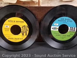 Lot #0313: 115ct Vintage 45 RPM Vinyl Records w/Case