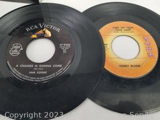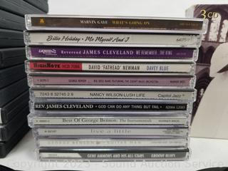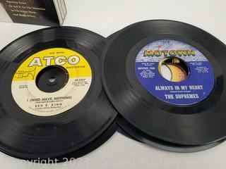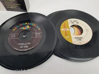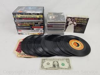 Lot #0130: 12 CD's, 11 DVD's, 25ct 45 RPM Record Albums