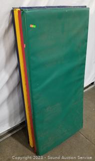116" x 47" x 2" & 96" x 48" x 2". Velcro edges, back edge. Some dirty spots, wear from use.