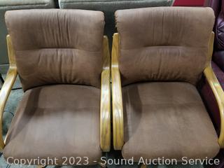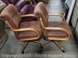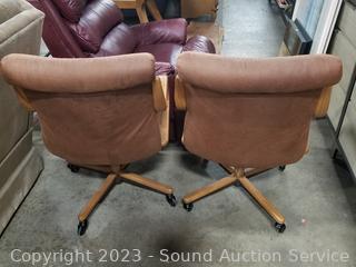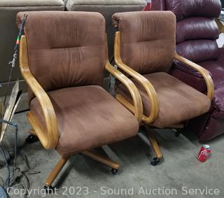 Lot #0265: 2 Microfiber & Oak Rolling Chairs