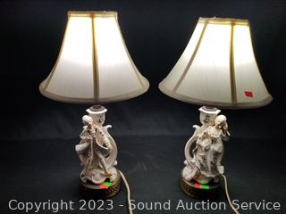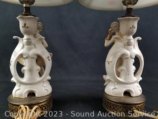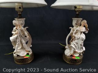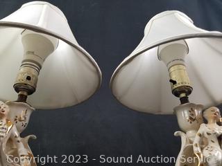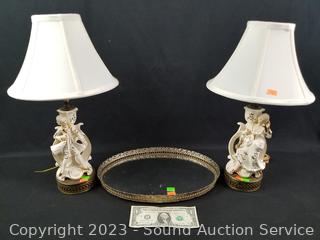 Lot #0110: 2 Vintage Porcelain Figure Boudoir Lamps - Work w/Vanity Tray