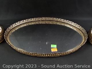 Victorian man & women figures, gold painted (some wear to gold finish). Approx. 12" tall. 13" x 9.5" tray.