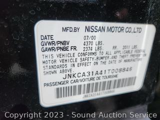 111,036 miles, 2 sets of keys, VIN# JNKCA31A41T008846, comes with title. Left side has some cosmetic wear, scuffs, scratches, back bumper has some damage to the finish (cracking in paint), interior is in good condition, some black marks on the back seats, small hole in front passenger seat. Runs & Drives, everything appears to be functioning as intended. New Battery. Was Grandma's car. Over 1/2 tank of gas!!