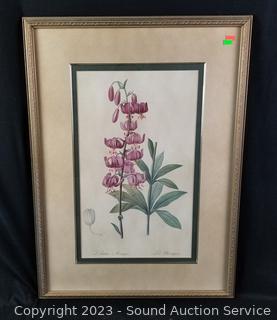 Framed, matted with glass. Lillium Martagon, Iris Xyphioides. 30" H x 20.5".