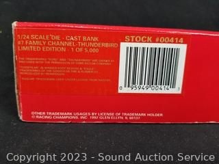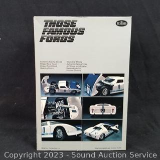 1:16, 1:24, 1:25 scale. Racing Champions Ltd Nascar coin bank, Ford Gt-40, Sunbeam Tiger, '64-1/2 Ford Mustang Hardtop. Unknown completeness, appear complete.