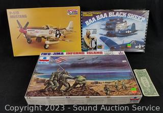 1 is sealed, others unknown completeness, appear complete. Major "Pappy" Boyington's Corsair 1:32 scale, BAA BAA Black Sheep F4U-1 Corsair, 1:32 scale P-51D Mustang, 1:72 scale Iwo Jima Inferno Island.