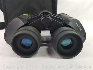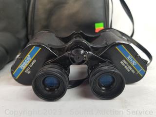 10x50 (don't see a brand), Bushnell Insta Vision, Tasco 10x50. All with cases, some lens covers.