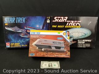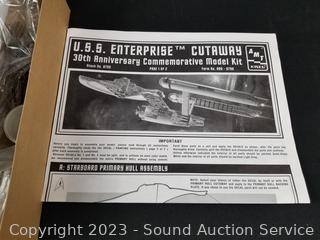 1:32 scale Gallion Shuttlecraft, 18" USS Enterprise, 1:650 scale Cut-Away USS Enterprise NCC-1701. Unknown completeness, appear complete.