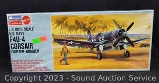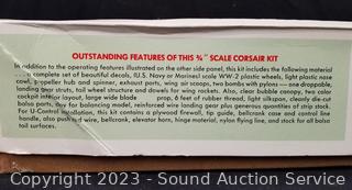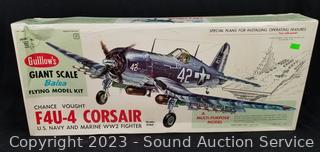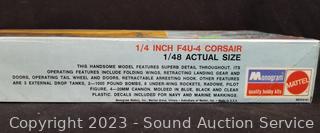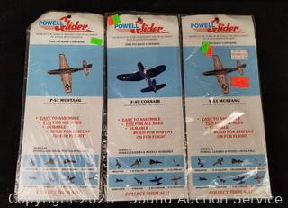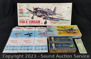 3 Powell Gliders P51 Mustang & F-4U Corsair, 1/4 scale US Navy F4U-4 Corsair Fighter-Bomber, 2 Megow's Scale Model Kits, Giant Scale 3/4" Chance Vought F4U-4 Corsair US Navy Marine WWII Fighter. unknown completness, appear complete.