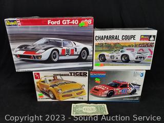 1:24, 1:25 scale. Chaparral Coupe Prototype Racer, Sunbeam Tiger, #10 Purolator Lumina, Ford GT-40 #98. All are factory sealed.