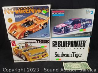 1:24, 1:25 scales. (2) Sunbeam Tiger, Havoline Ford Thunderbird #28, 1:20 scale McLaren Mk8d.