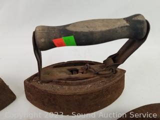 One with handle, W.H.Howell Co. and others, brands are worn, various rust from age.