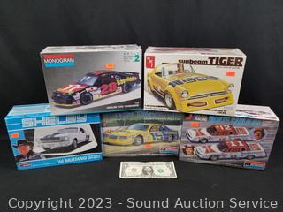 1:24 scale, Shelby '66 Mustang GT350, Havoline Ford Thunderbird, Wrangler Thunderbird, Darrell Waltrip Monte Carlo SS Grand National Race Car, 1:25 scale Sunbeam Tiger. All factory sealed.