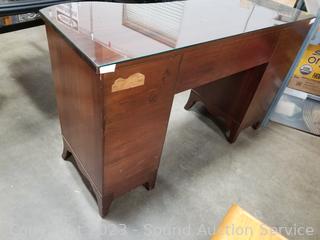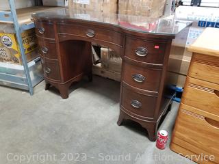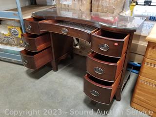 Lot #0249: 7 Drawer Mahogany Desk w/Protective Glass Top