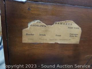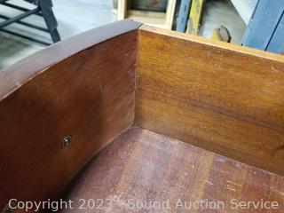 30" H x 48" W x 15.5" to 19" D. Appears to be solid wood construction, dovetail joinery.