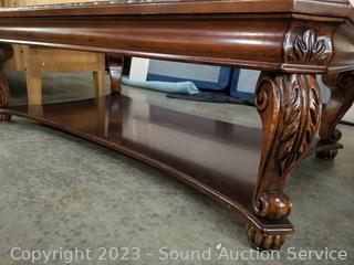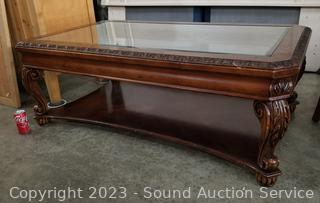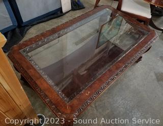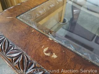 Lot #0045u: Cherry Finish Carved Edge Glass Top Table