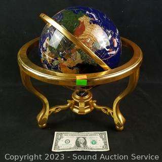 Lot #0308: Gemstone & MOP Globe w/Compass