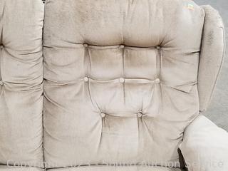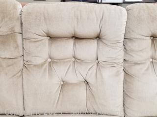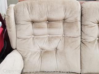 In great condition, don't see any issues. Both ends recline. 36" H x 80" W x 18" to seat.