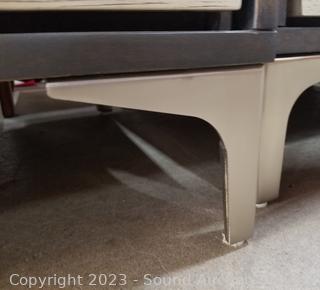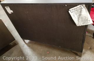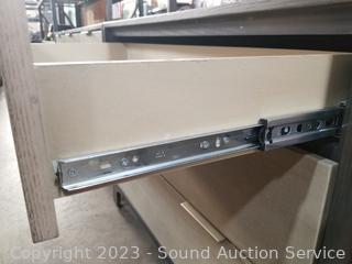 Matches the previous & next few lots. Ball bearing drawer guides, soft close drawers. In excellent condition, Grey wood veneer finish. 33" H x 41" W x 19" D.