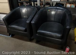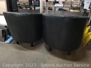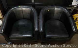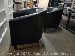 Lot #0030: Pair of Black Vinyl Barrel Back Armchairs