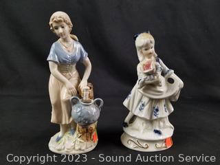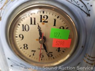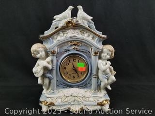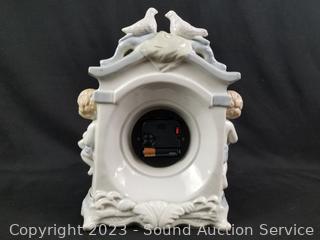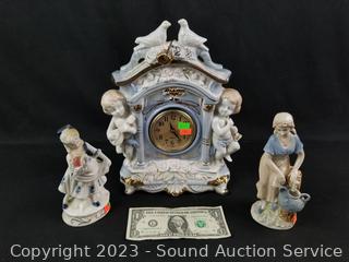 Lot #0127: Porcelain Quartz Mantle Clock & 2 Figures