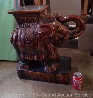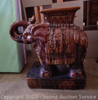 Lot #0042: Pottery Enamel Elephant Garden Bench