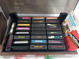 Lot #0109: 34 Atari w/2 Game Racks/Cases, Album & Various Manuals