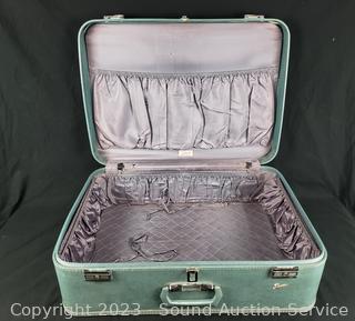 Locking with keys. Signs of wear from use, scuffs, stains, tears on the interior. 11.5" x 15" x 6" to 9" x 19" x 26".