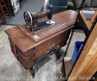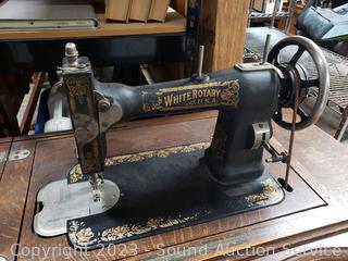Lot #0147: Antique White Rotary Treadle Sewing Machine