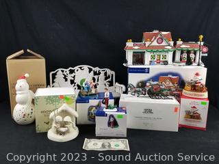 Lot #0102: Assorted Holiday Christmas Village Figures, Decor