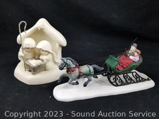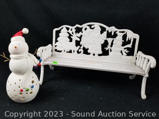 LED Snowman, Cast Iron Bench, Dept. 56 "Dashing Through the Snow" Porcelain Figure, Dept. 56 & Other Village figures. Refer to photos for more info.