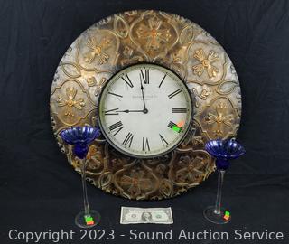 Lot #0062: Buchanan Quartz Clock, 2 Glass Candleholders