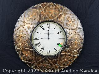 24" Dia clock, 9" to 11" tall candleholders.