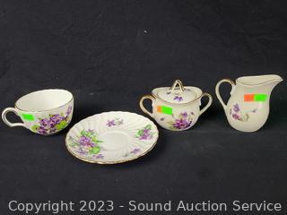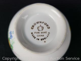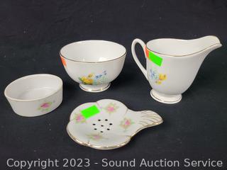 Crownford England & Other cream & sugar, porcelain filter, Crown England, Adderley England, Royal Standard England, Royal Vale England, Clare England, Jason England.