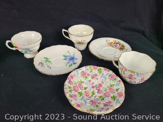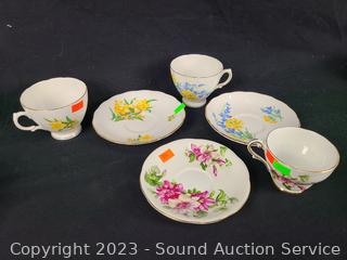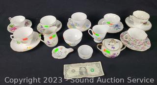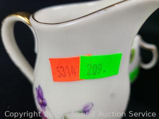 Lot #0209: Fine China Cream & Sugar, 7 Cups w/Saucers