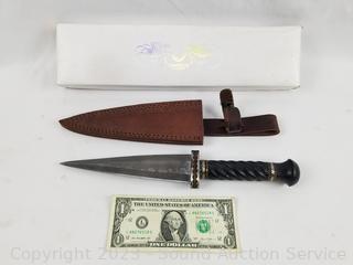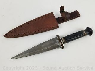 Lot #0194: Handmade Damascus Dagger w/Leather Sheathe