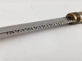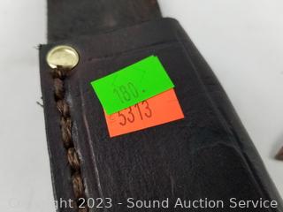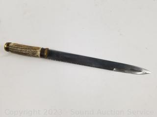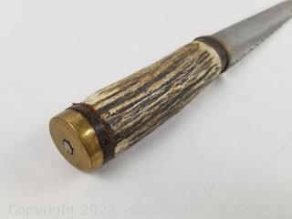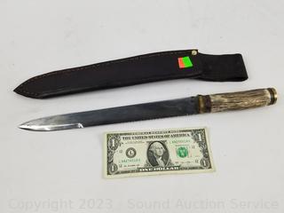 Lot #0180: Handmade Stag Handle 15.5" Knife w/Leather Sheathe
