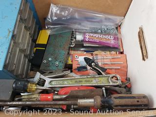 Lot #0122: Hardware Organizers w/Some Hardware & Hand Tools