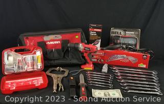 Lot #0165: Husky Tool Bag w/Wrench Set, First Aid Kit, Bike Repair Kit