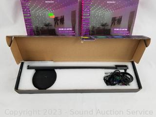 Curtain lights are 4ft x 6ft white/pink/purple, Table lamp are RGB with remote, 16" tall. All work, complete.