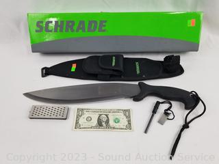 Lot #0183: Nice Schrade Bolo Machete w/Flint, Steel, Honing Stone & Sheathe
