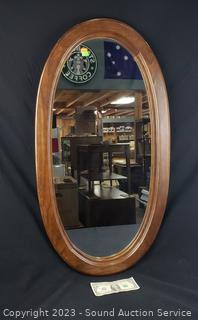 Lot #0002: Oval Wood Wall Hanging Mirror