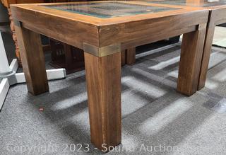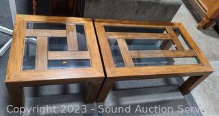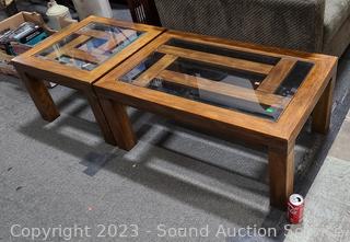 Lot #0145: Pair of Oak Glass Top Living Room Table Set