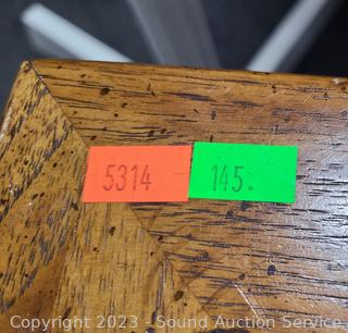 16.5" H x 24" x 24" side table, 16.5" H x 38" x 24" coffee table. Some scuffs, wear to finish.