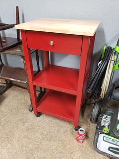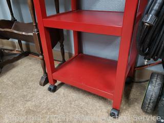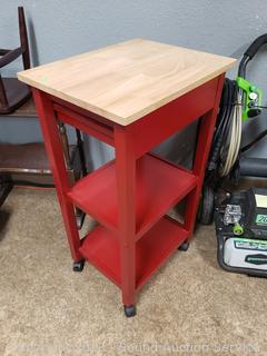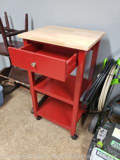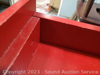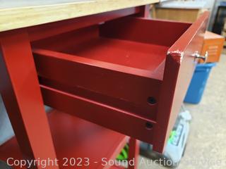 Lot #0256: Red Rolling Wood Single Drawer Utility Cart